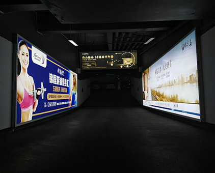 停車(chē)場(chǎng)室內(nèi)廣告拉布燈箱—該項(xiàng)目由我司提供鋁型材、LED燈、畫(huà)面以及技術(shù)安裝指導(dǎo)(不含安裝),全部燈箱都以墻面壁掛式展現(xiàn),燈箱安裝的完成的同時(shí)普通的停車(chē)場(chǎng)也升級(jí)形成了一道亮麗的廣告風(fēng)采!